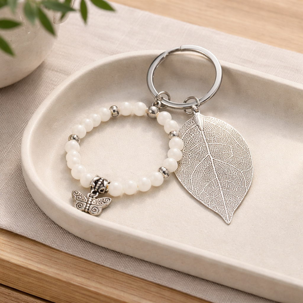 Porte clé clé ou bijoux sac en pierre de nacre 6mm