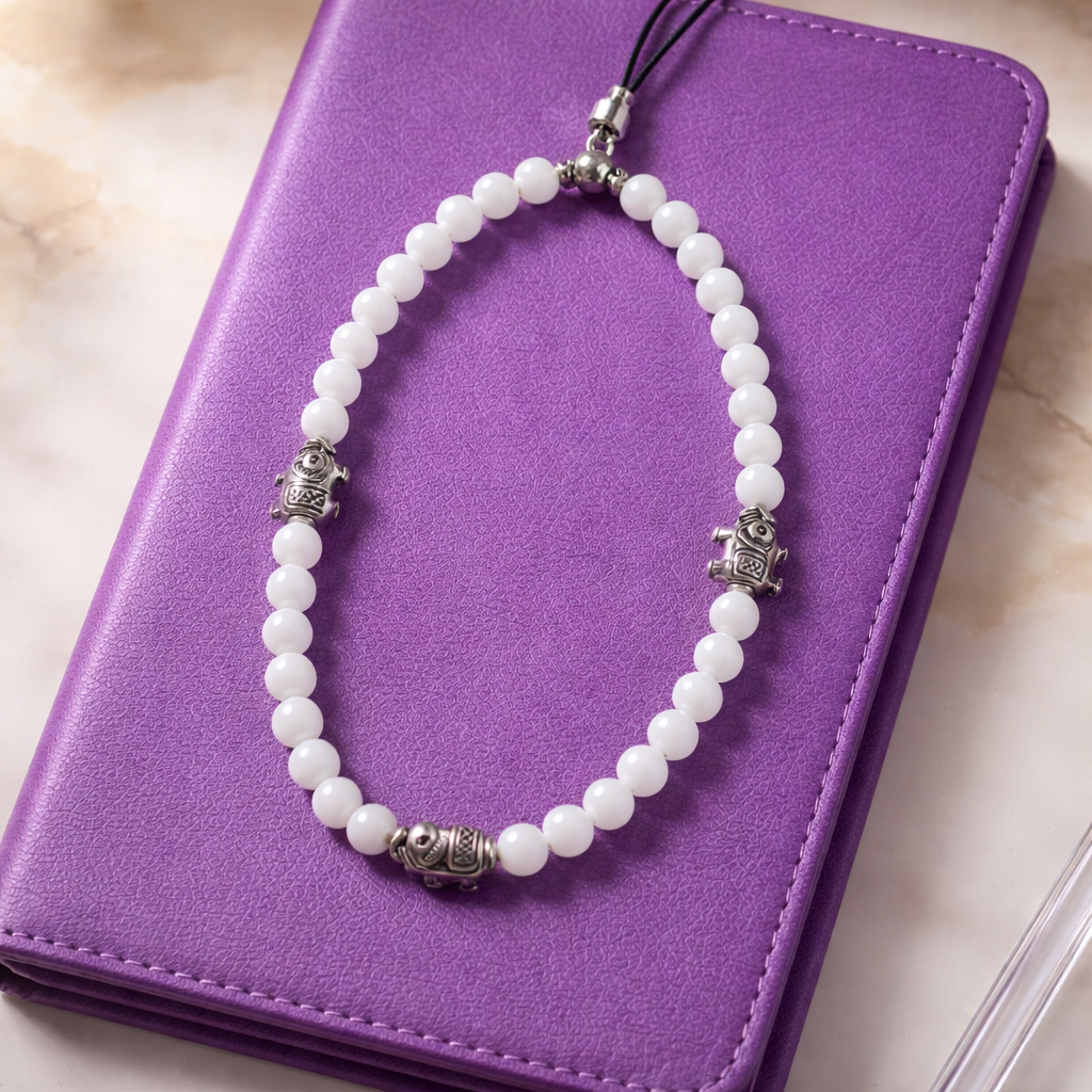 Bijoux téléphone en pierre de nacre 6 mm et des petits éléphants 🐘
