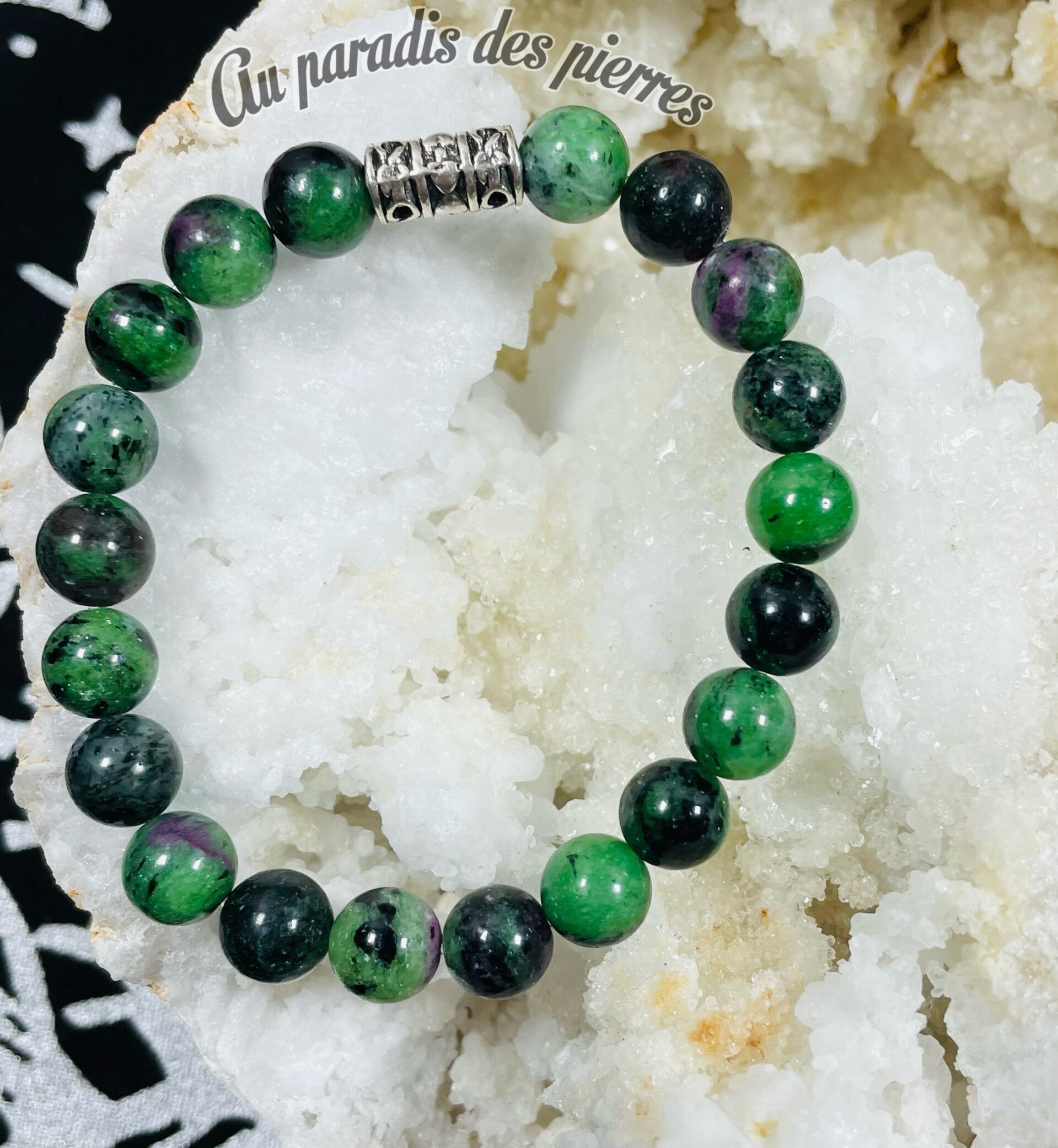 La pierre rubis zoïsite permet l'équilibre entre pouvoir, don de soi et sens de la justice, stimule également l'ouverture du chakra du cœur, guérit les peines de cœur et aide à la séduction.