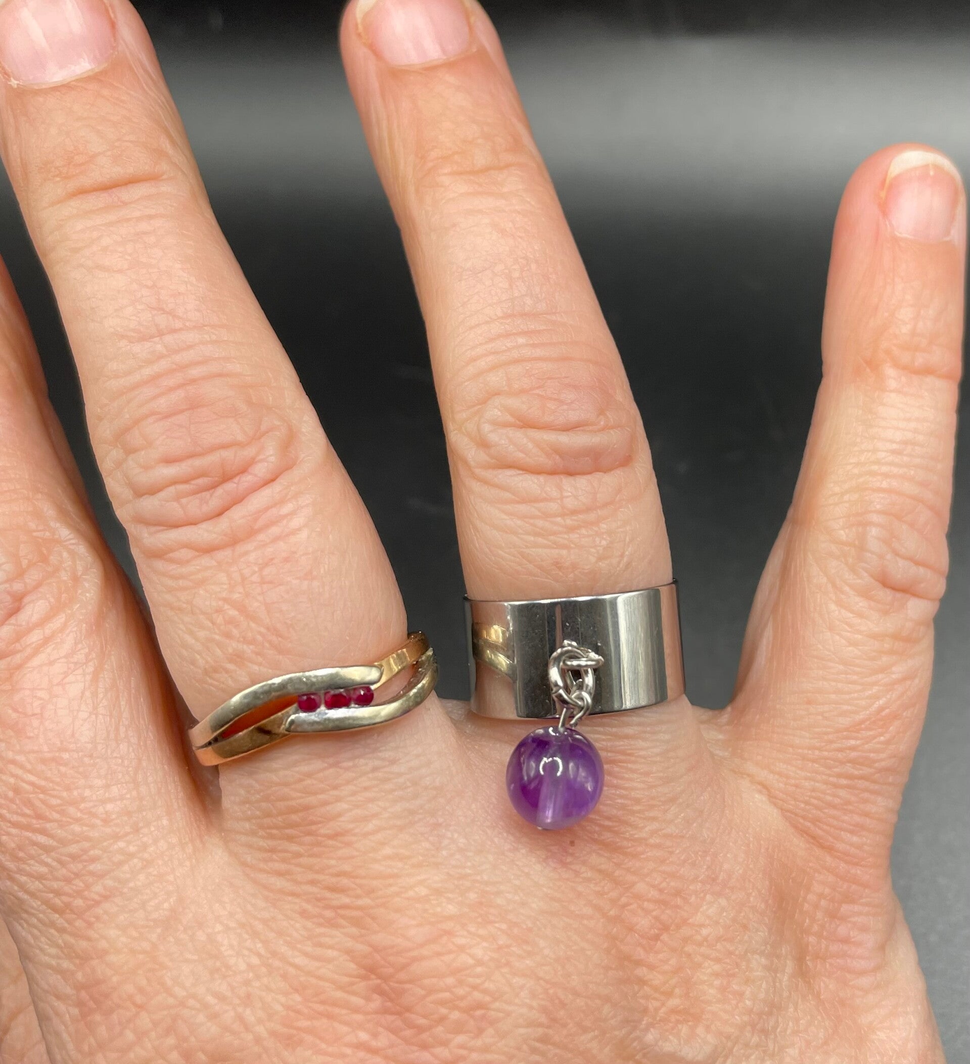 Bague réglable pampille améthyste