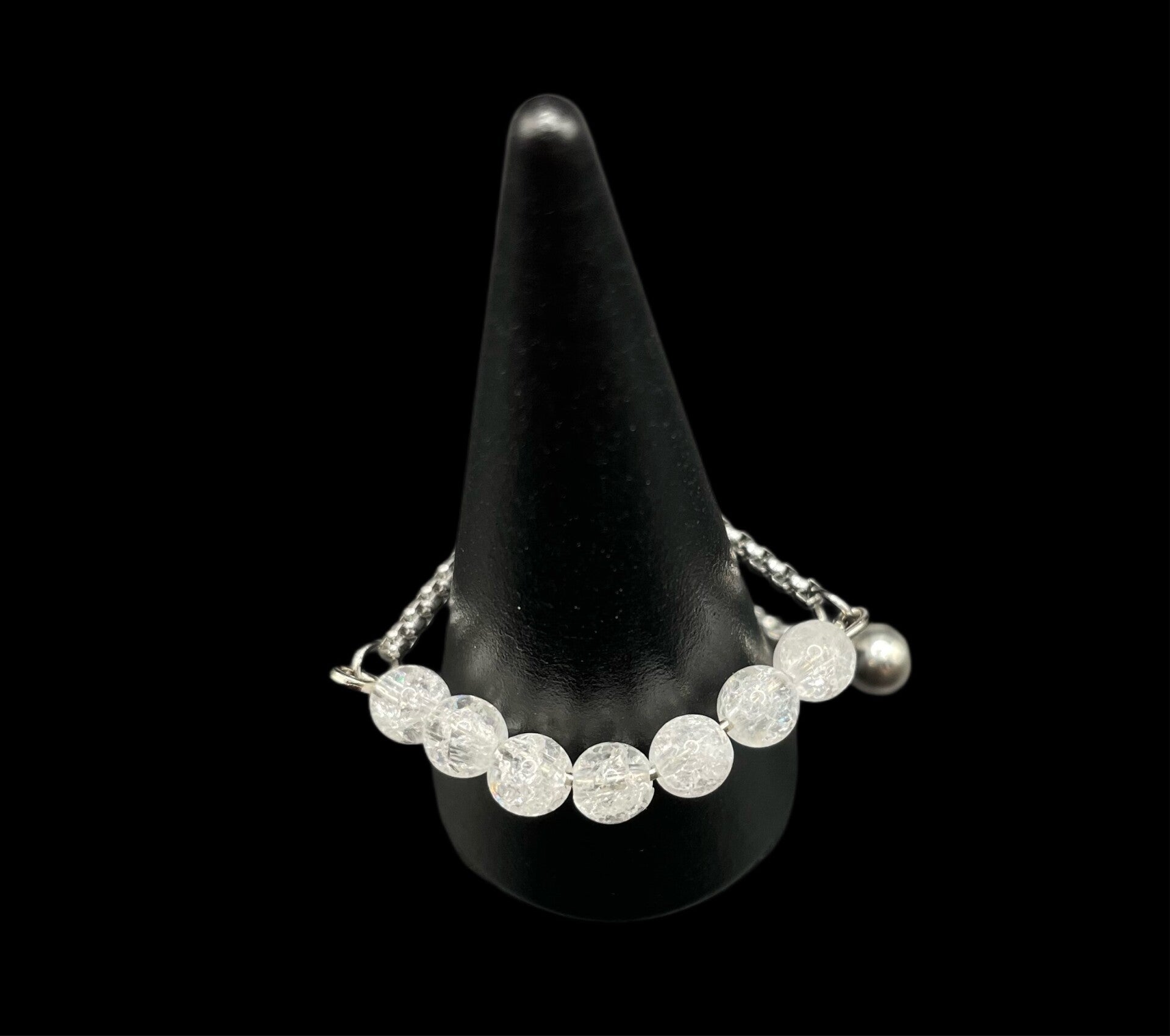 Bague chaînette réglable cristal craquelé