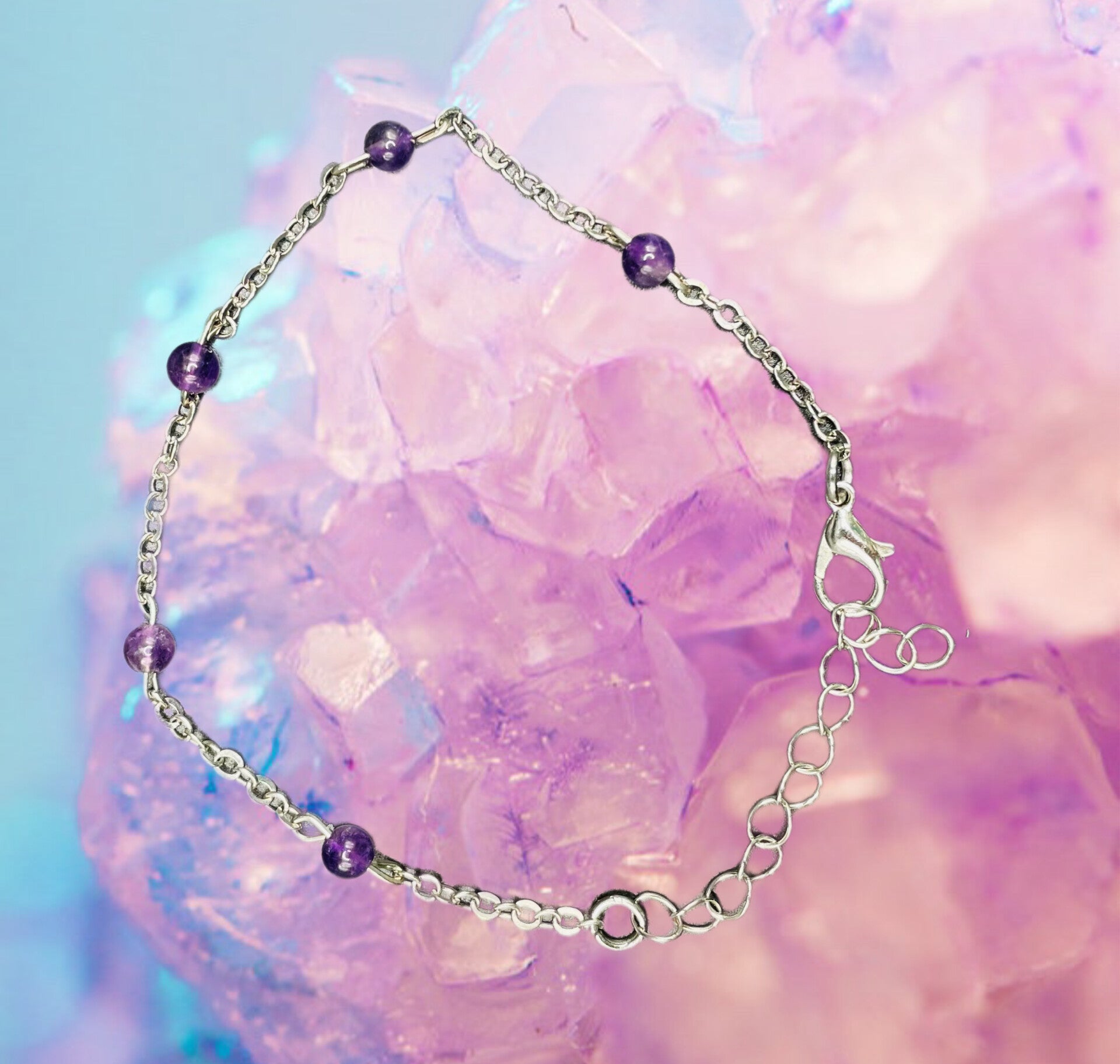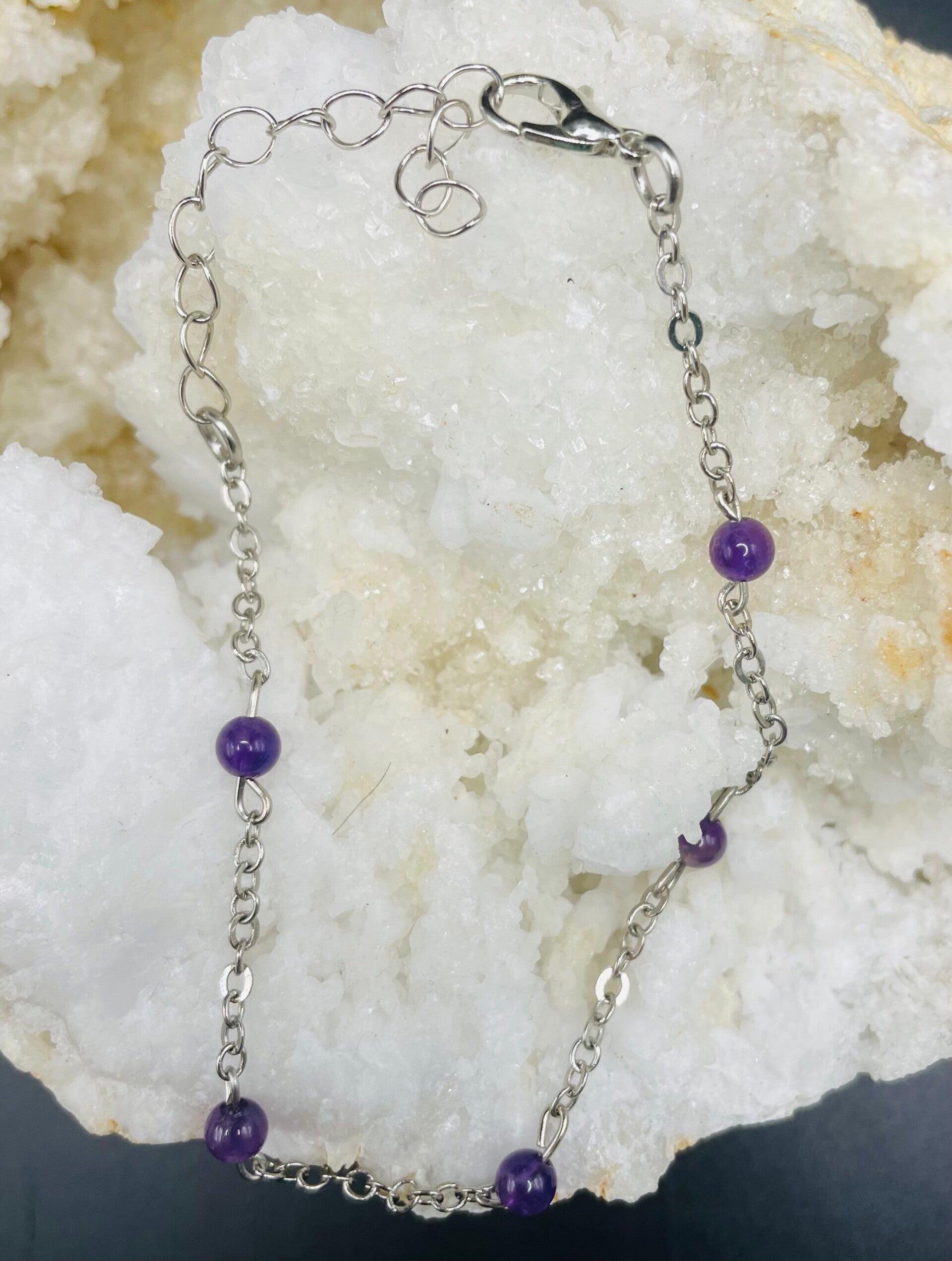 Bracelet chaînette réglable améthyste