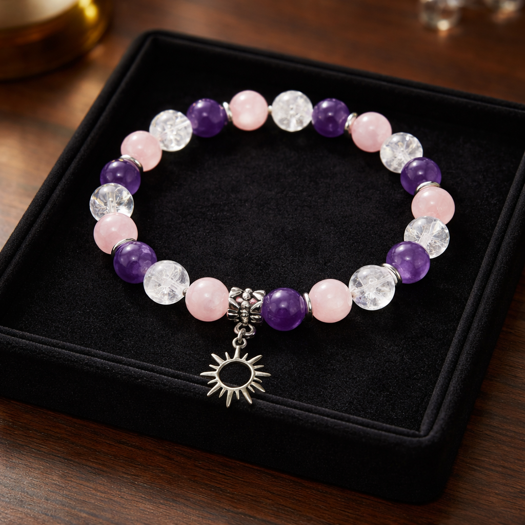 Améthyste: a un effet positif sur votre système nerveux autonome et favorise ainsi la relaxation du corps et de l'esprit. Il soulage les symptômes liés au stress comme les maux de tête et la nervosité. Il peut même aider à diminuer les symptômes de la migraine.