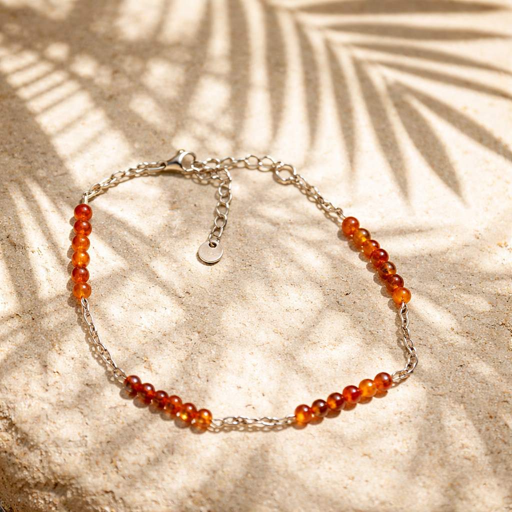 Chevillere chaîne en acier inoxydable et cornaline