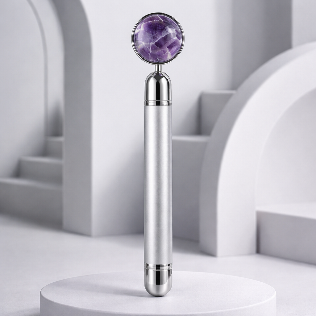 Cette baguette vibrante à tête ronde utilise la technologie des vibrations soniques pour aider à réduire les tensions du visage. Avec 6 000 pulsations par minute, la baguette peut aider à réduire la visibilité les poches et les cernes autour des yeux, et une utilisation régulière peut favoriser un teint frais, radieux et lisse. La sensation vivifiante de la baguette peut être renforcée par votre sérum ou votre crème hydratante préférée, car elle permet une meilleure répartition et absorption sur la peau.