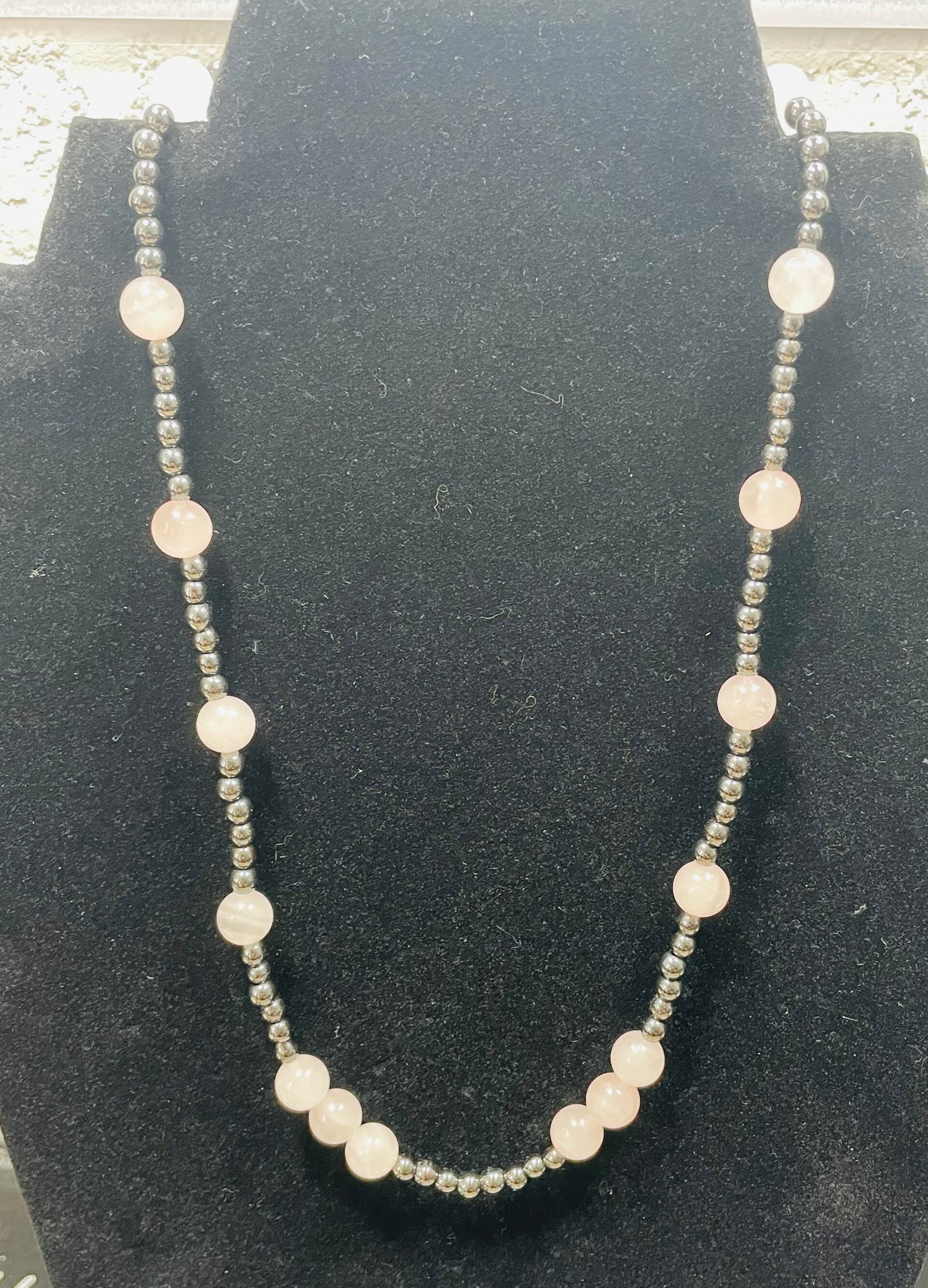 Collier hématite (4mm)et quartz rose (8mm)