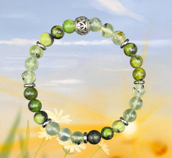 Les jeunes enfants apprécieront ce bracelet en pierres naturelles jade nephrite et préhnite.