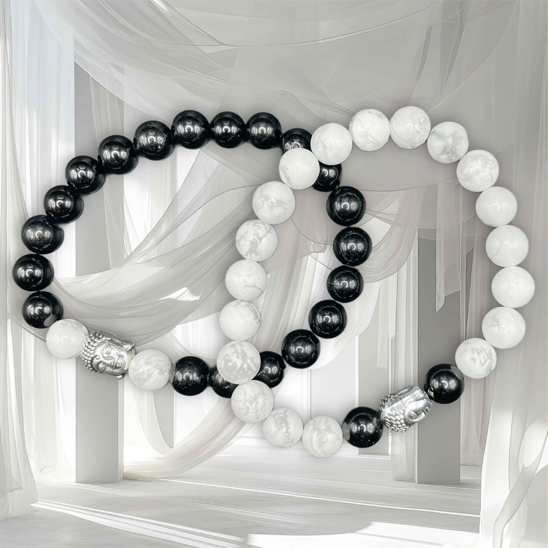 Découvrez l'harmonie entre la sérénité et la protection avec ce magnifique bracelet en Howlite et Tourmaline.