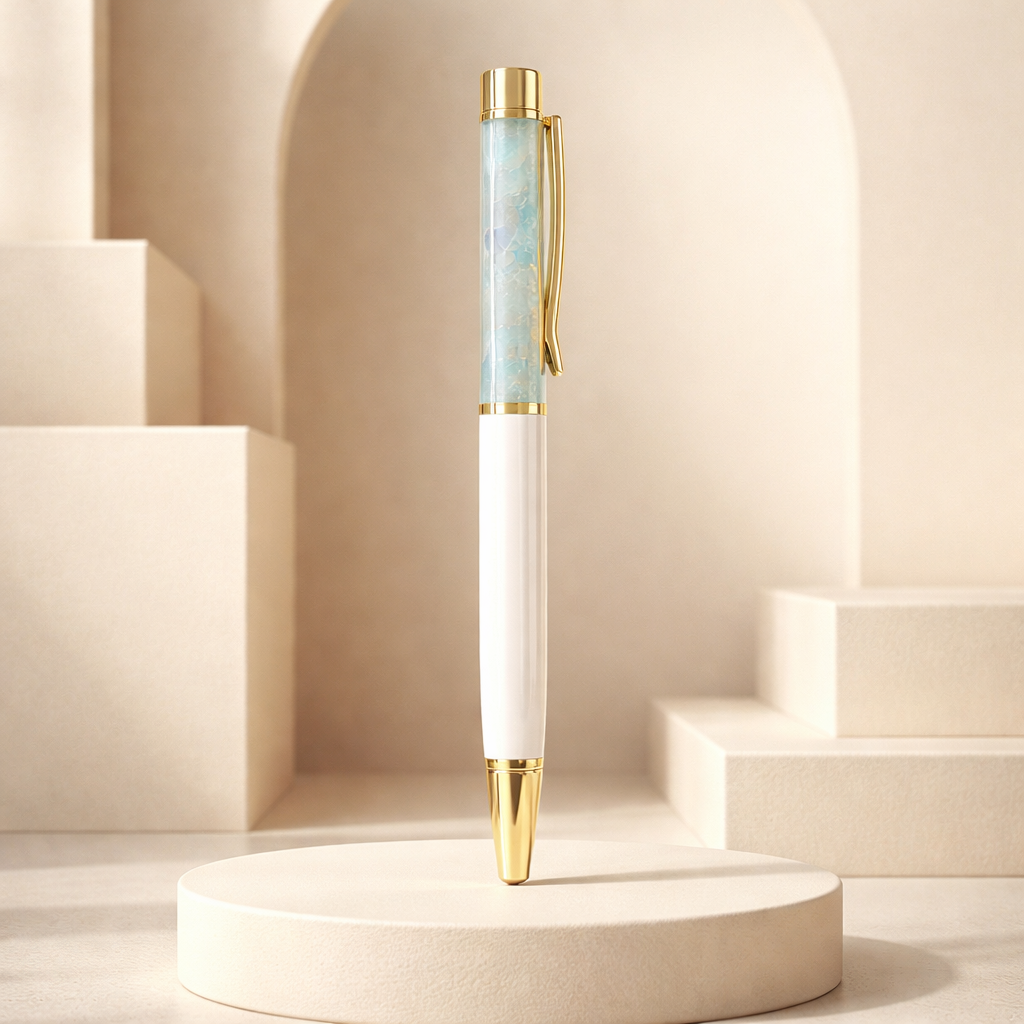 Stylo avec pierres naturelles aiguë marine