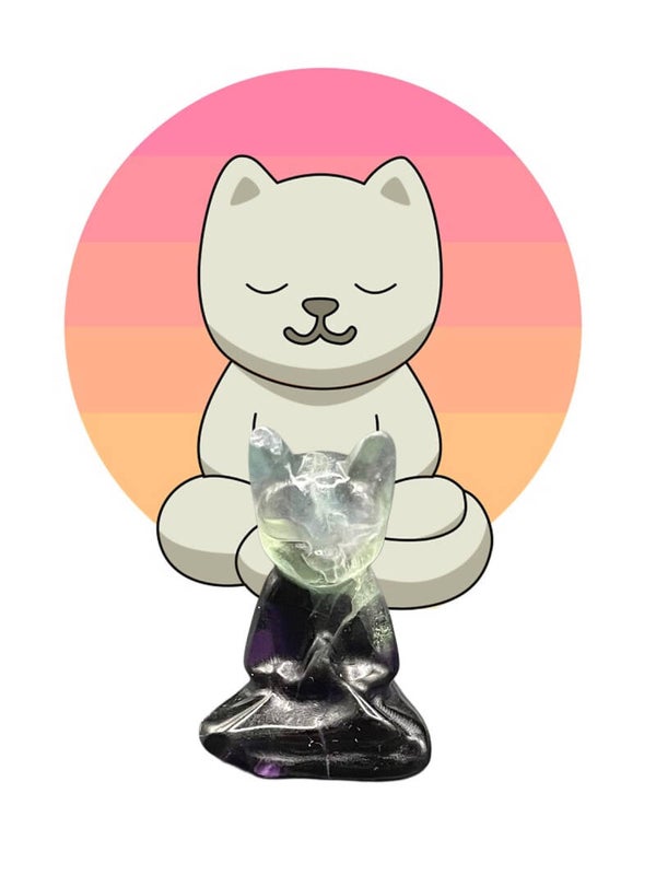 Chat zen en fluorite violette