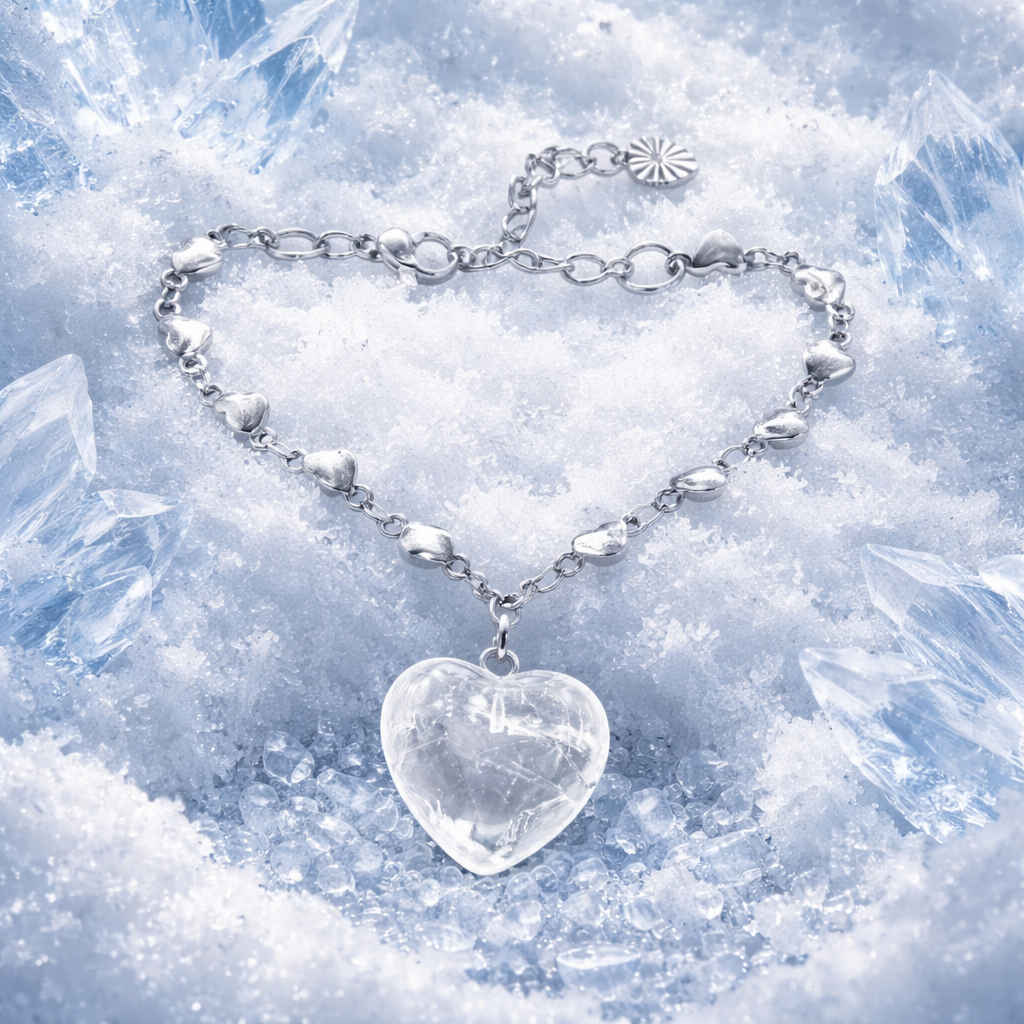 Bracelet acier inoxydable cœur et son cœur en cristal de roche
