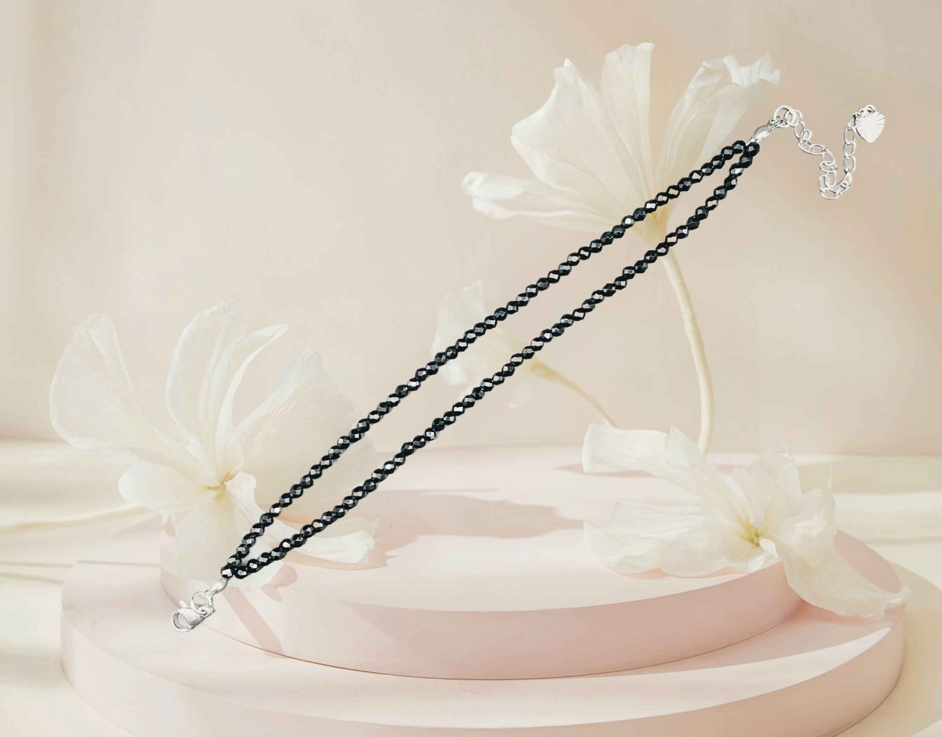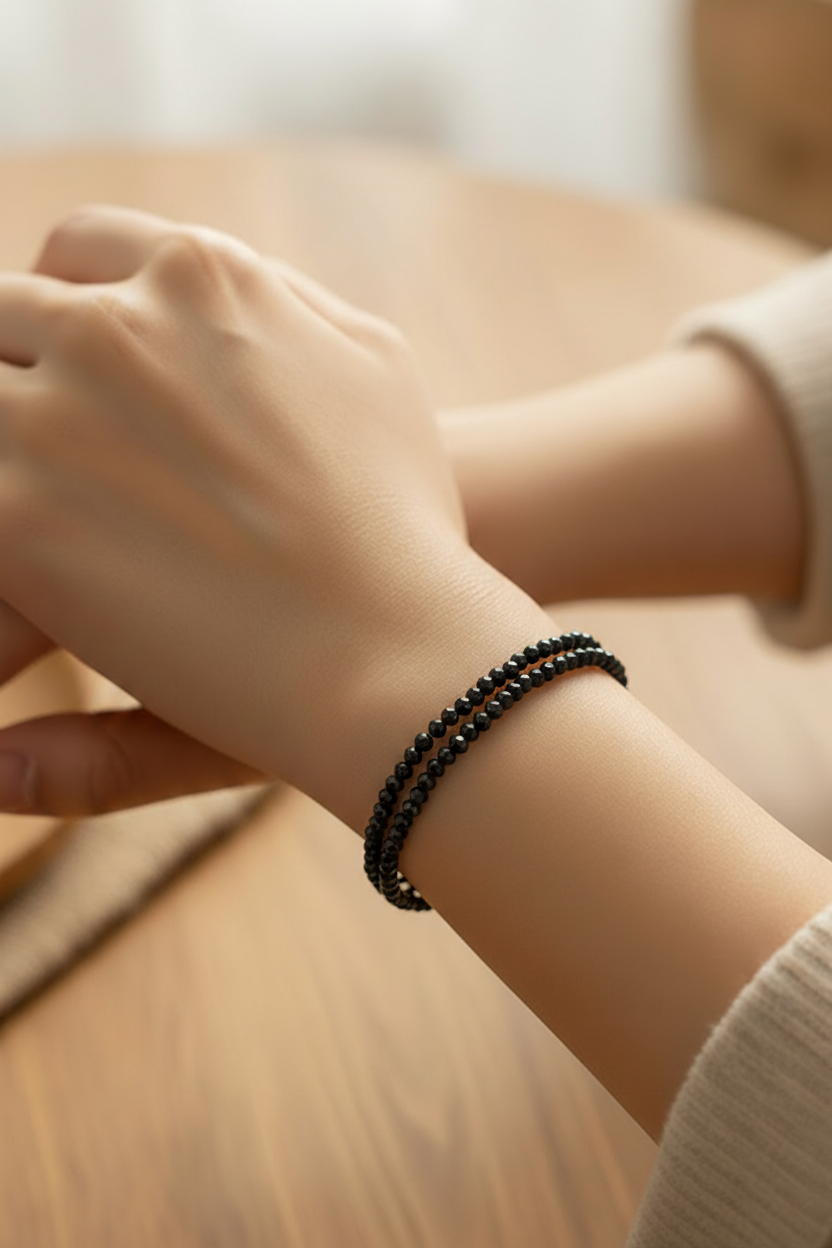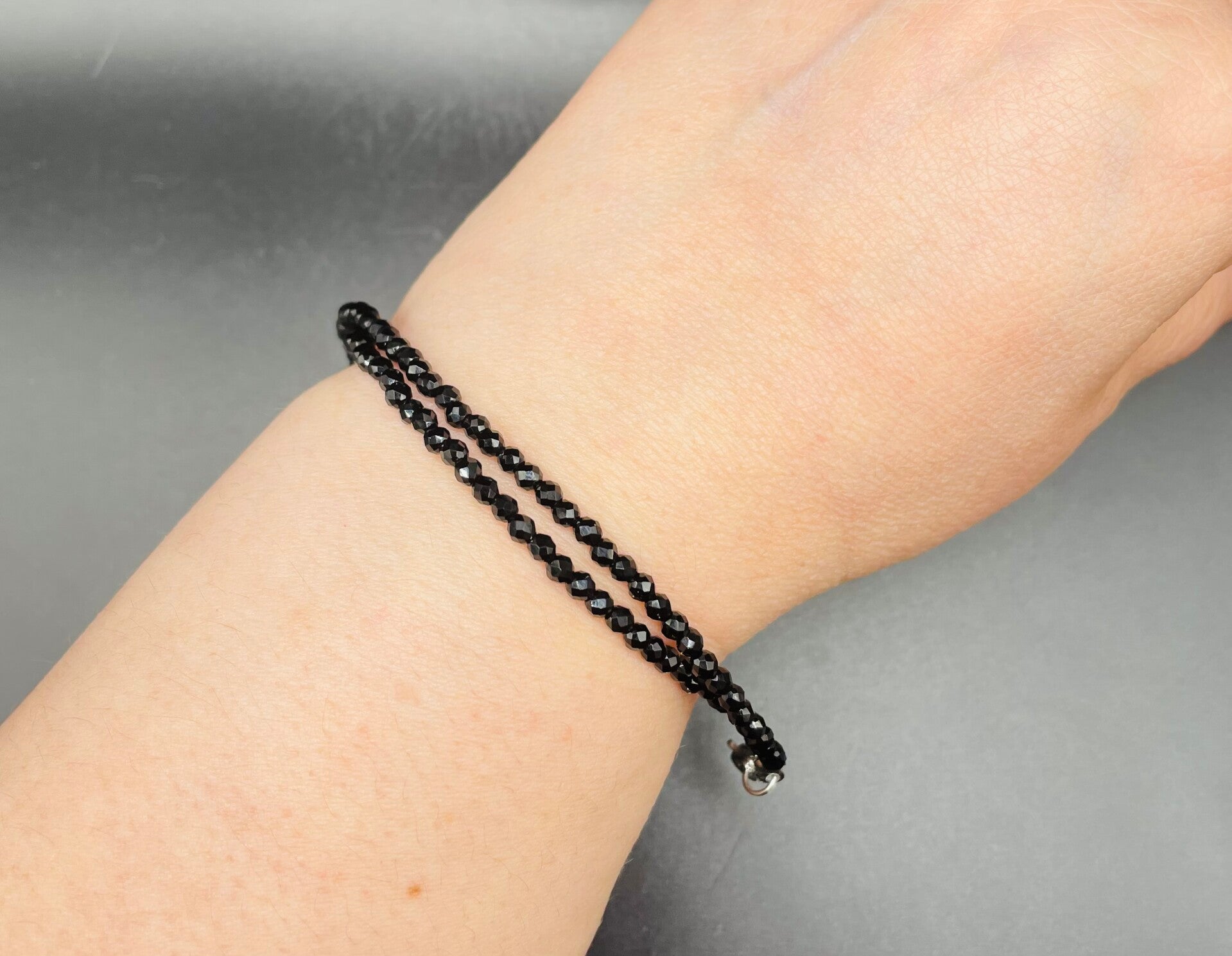 Bracelet double spinelle noire facette