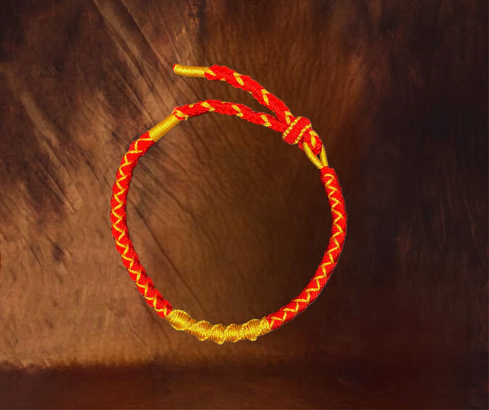 Bracelet Tibétain en Fil Doré & Fil Rouge, Nœud Écailles de Dragon Ajustable
