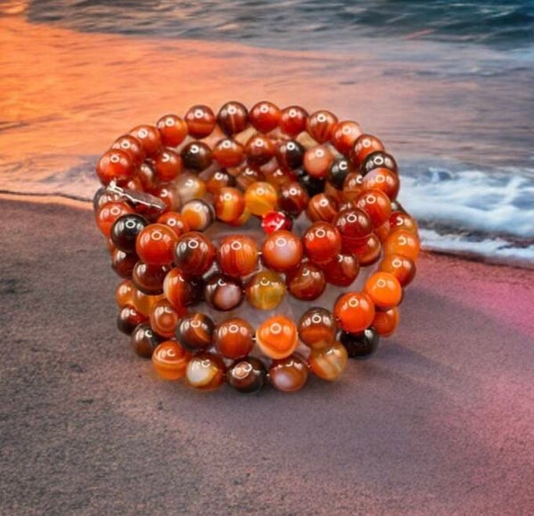 Bracelet réglable multi tour agate rouge