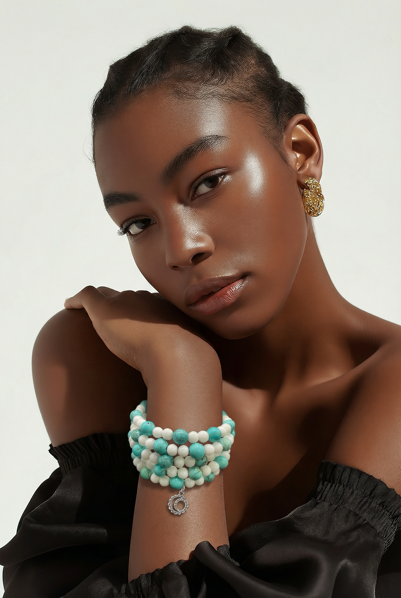 Bracelet multi tour turquoise et agate blanche