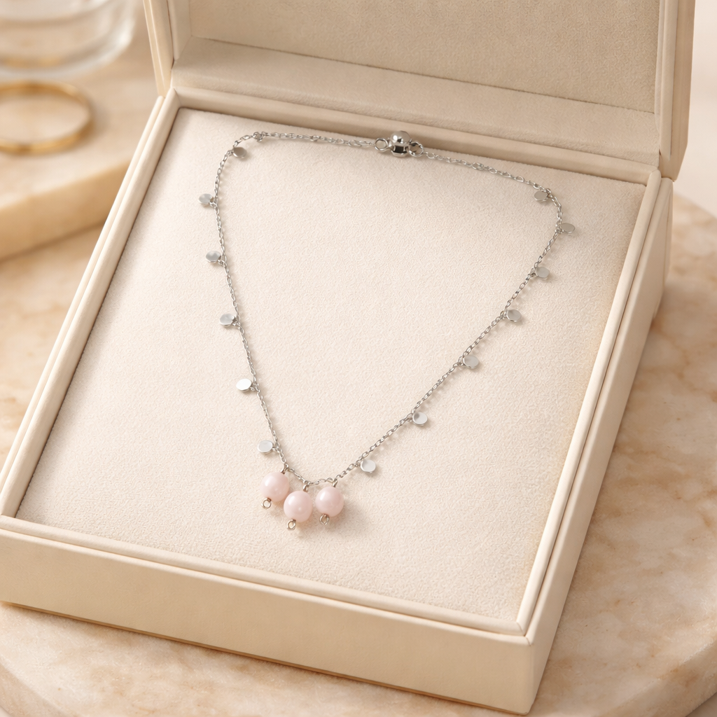 Chaîne pendentif rond avec pierre Kunzite